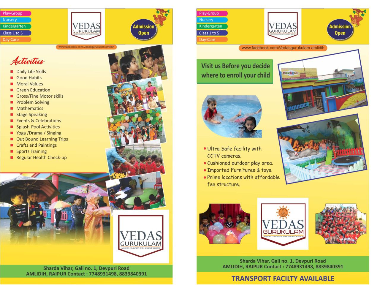 “Vedas Gurukulam”, promoted by “'Vedas Society for education and social welfare with 'Vedas society for education and social welfare” is a uniquely inspiring pre-school complemented with focus on not just the Academic and Scholastic development of your child but also on the Social, Physical and Cultural aspect for a Better-tomorrow. The amazing blend of academics, technology and infrastructure not only delights but energizes your Child to learn while playing.